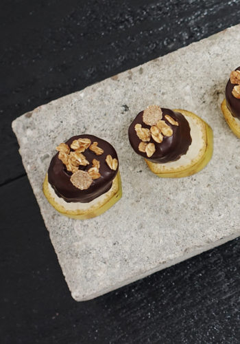 Lekker bij de koffie: chocoladebananen Vergeet het koekje bij de koffie, maar serveer deze chocoladebananen.